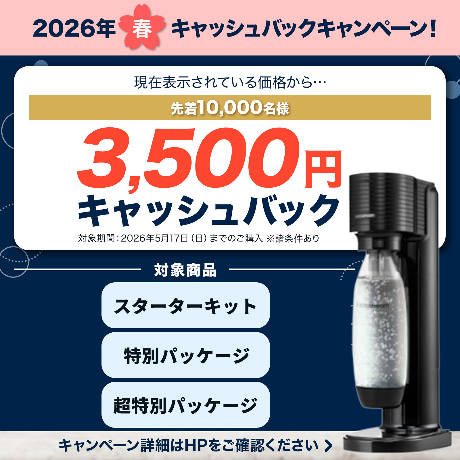 「GAIA」を購入した方で、ソーダストリームブランドサイトにて「会員登録」をしていただくと保証期間をさらに+2年間延長し、最長4年の製品保証を付帯します。