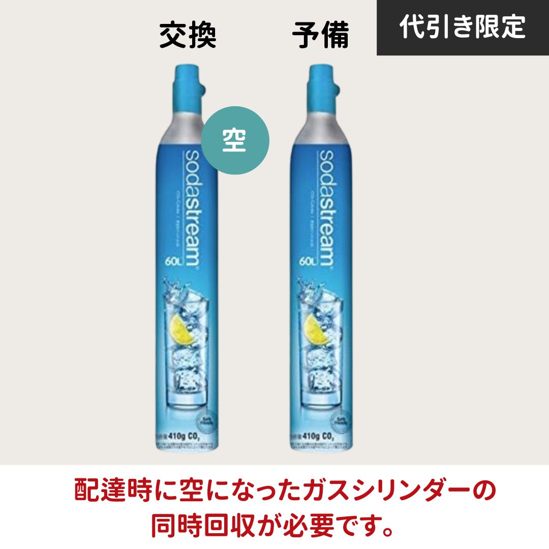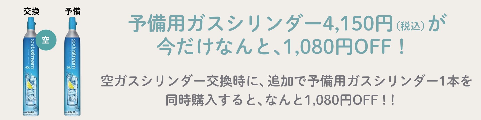 本キャンペーンの商品は、商品配達時に、お手元にある空になったソーダストリームのガスシリンダーとの同時回収が必要です。