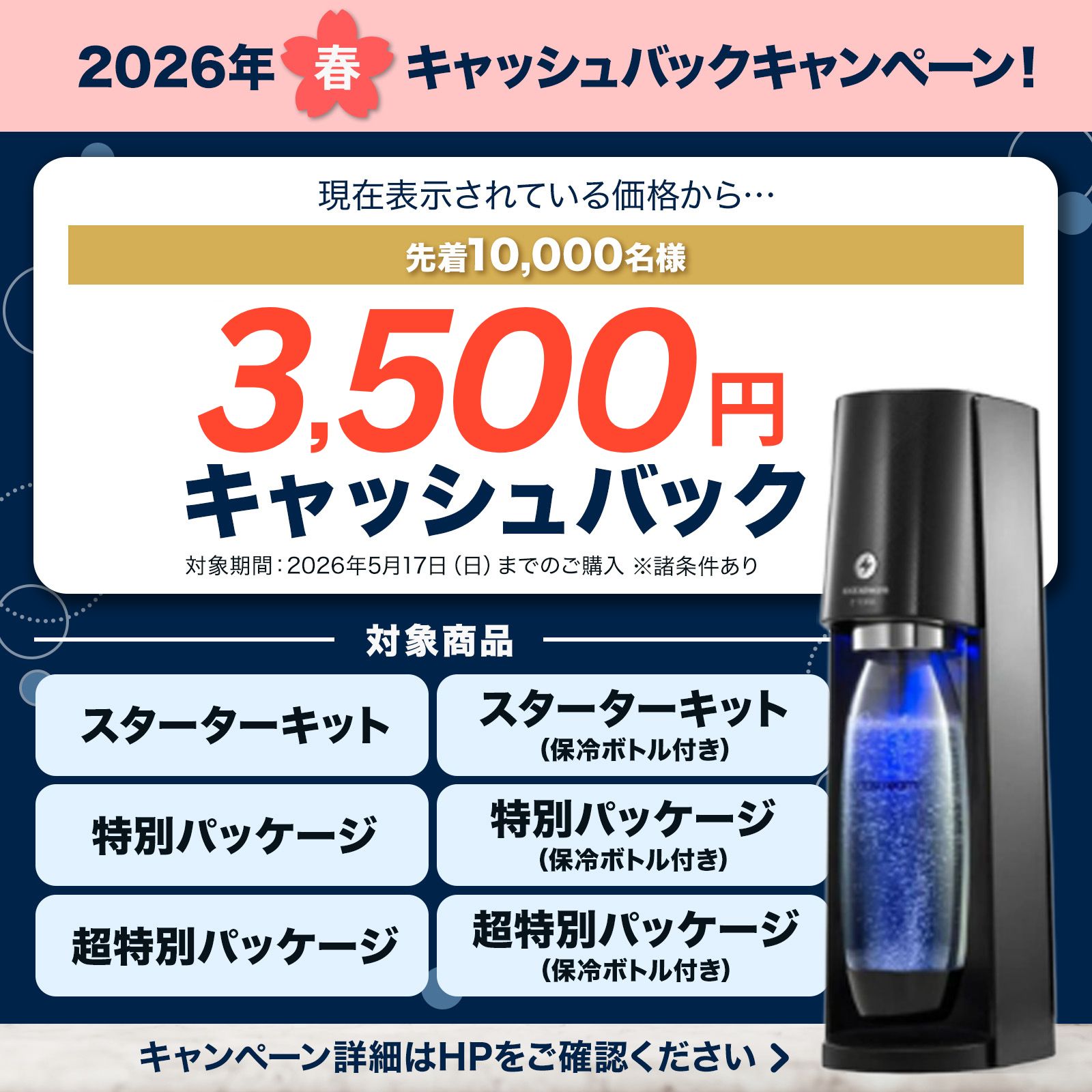 「E-TERRA」を購入した方で、ソーダストリームブランドサイトにて「会員登録」をしていただくと保証期間をさらに+2年間延長し、最長4年の製品保証を付帯します。